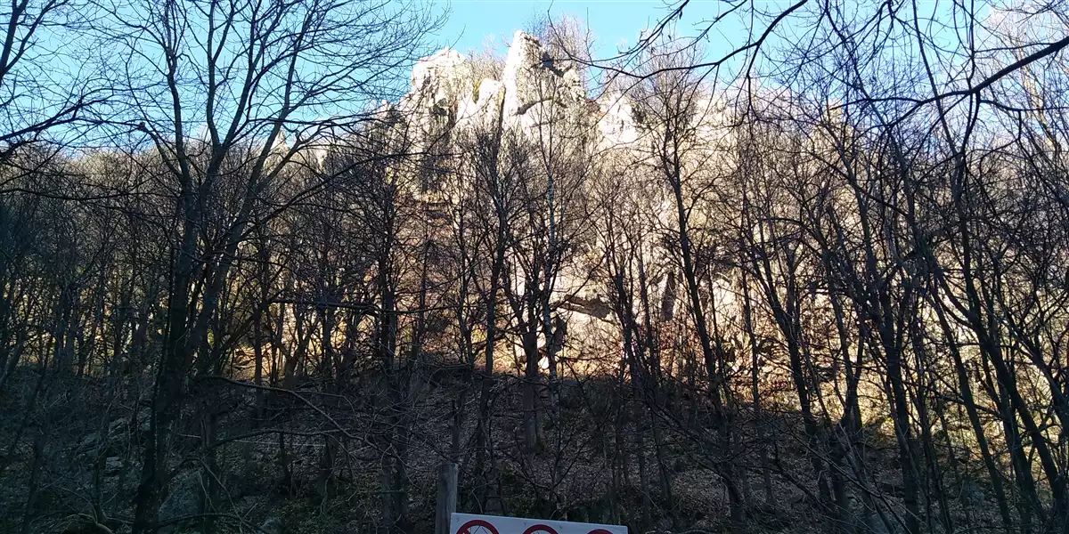 segnaletica posta sul sentiero che conduce alla parete di arrampicata